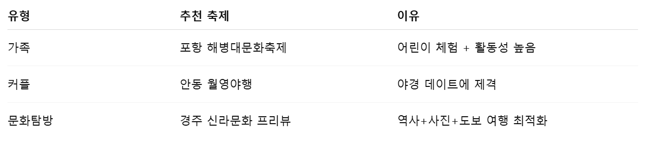 💡 경북 축제 여행 팁
