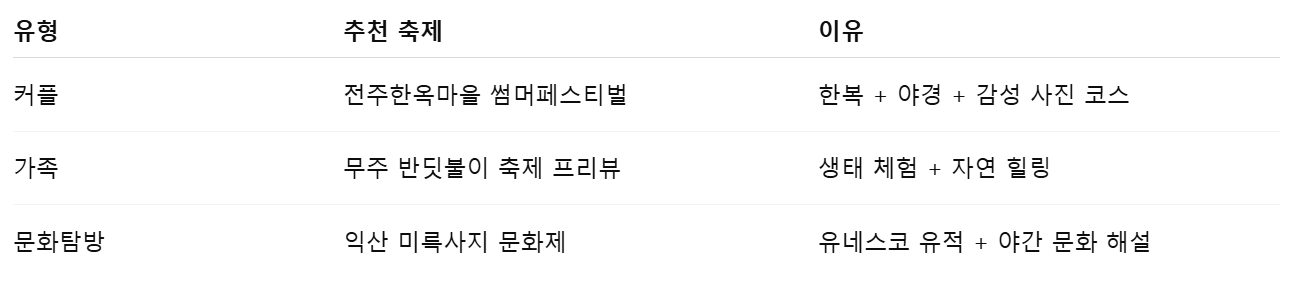 💡 전북 축제 여행 팁