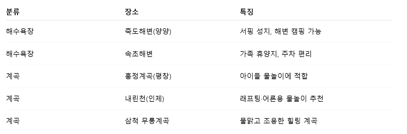 🌊 2. 강원도 해수욕장 & 계곡 추천