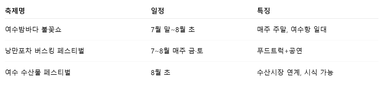 🎉 7. 여수 여름 축제 일정 (2025년 예정)