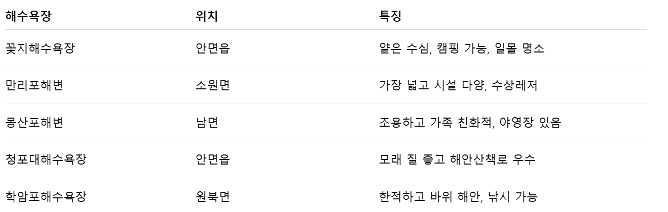 ✅ 대부분 해수욕장은 6월 말 ~ 8월 중순까지 운영, 태안군청 홈페이지 사전 확인 권장