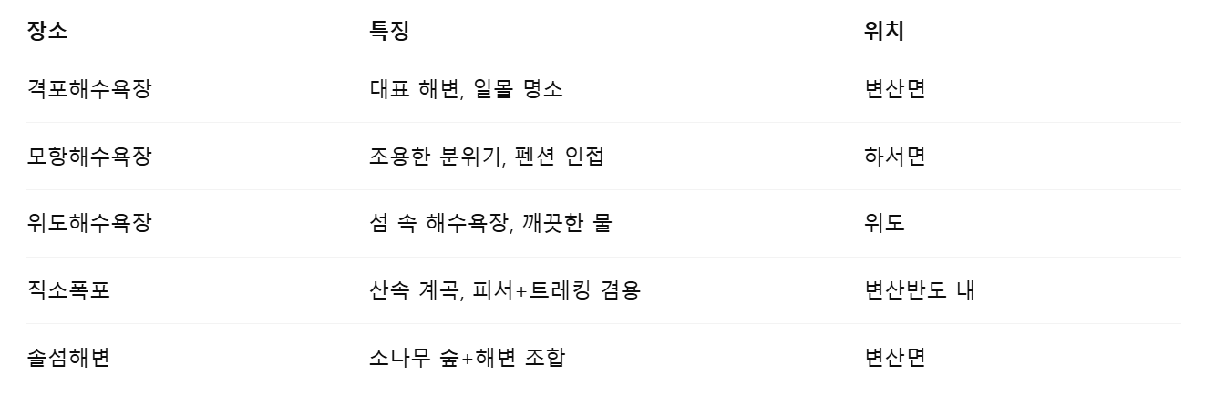 - 해안도로 드라이브, 트레킹, 물놀이 모두 가능