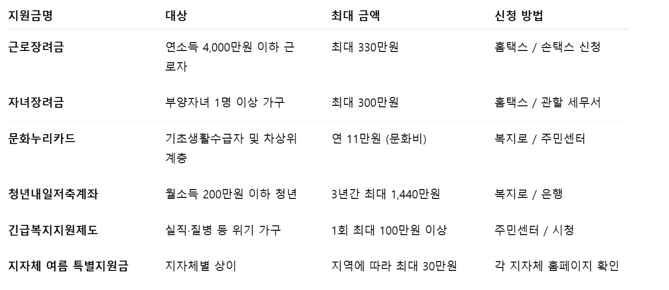 오늘은 2025년 여름에 꼭 챙겨야 할 정부 지원금을 한눈에 정리해드릴게요.