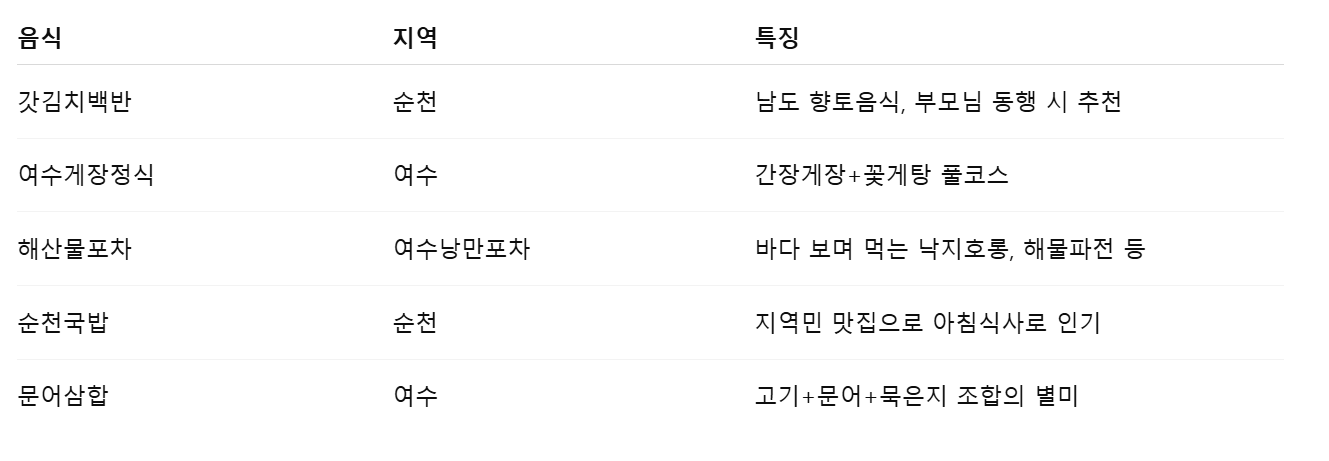 🍽️ 여수·순천 대표 먹거리 TOP 5