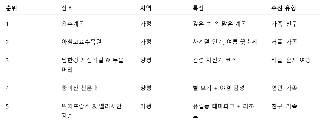 이번 포스팅에서는 2025년 여름에 가기 좋은 가평·양평 여름휴가지 TOP 5와 함께