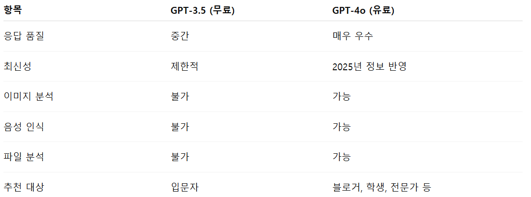 | “GPT-3.5 vs GPT-4o|ChatGPT 유료 버전은 진짜 쓸만할까?” (0) | 2025.06.07 |