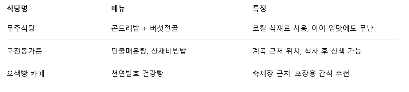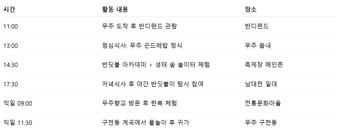 🕐 추천 여행 일정 (1박 2일 구성, 가족 중심)