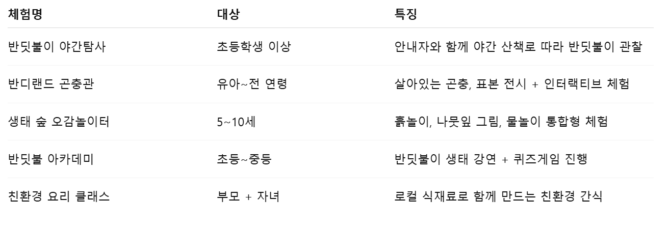 가족 단위 생태교육 + 자연 체험 여행지로 인기가 높습니다.