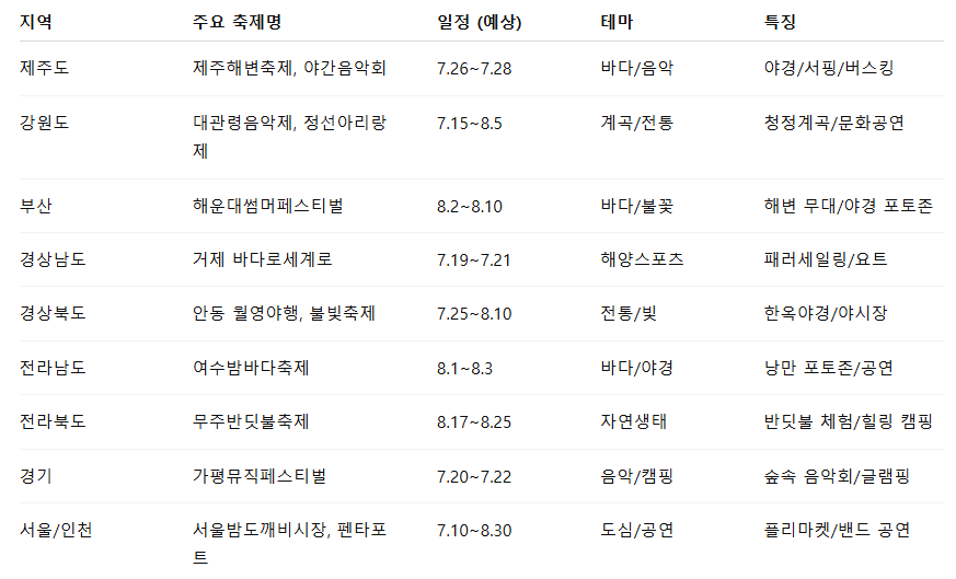 📄 본문: 2025 여름 국내 여행 & 축제 총정리