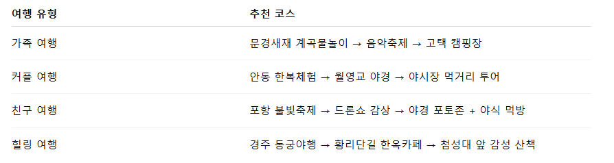 🎯 여행자 유형별 추천 코스