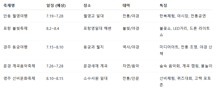 📅 2025 경상북도 여름 축제 일정표