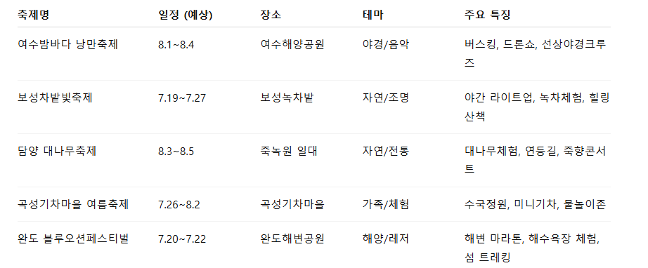 📅 2025 전라남도 여름 축제 일정표