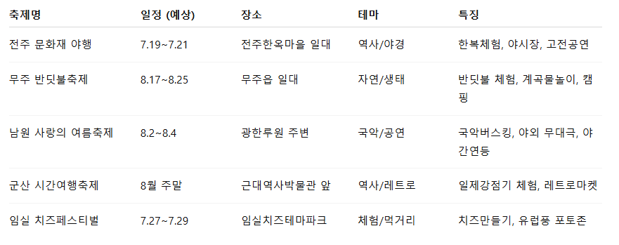 🌲 2025 전라북도 여름 축제 & 여행지 추천