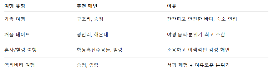 🎯 유형별 추천 해수욕장