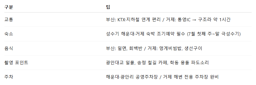🚗 부산·거제 해변 여행 꿀팁
