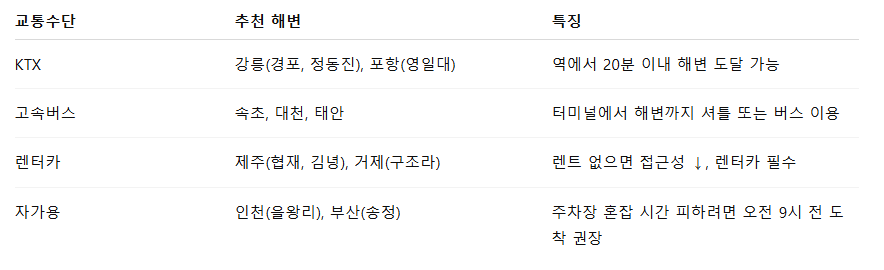 🚗 교통 수단별 바다 접근 팁