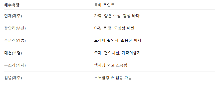 📌 해변별 특화 포인트 요약 표