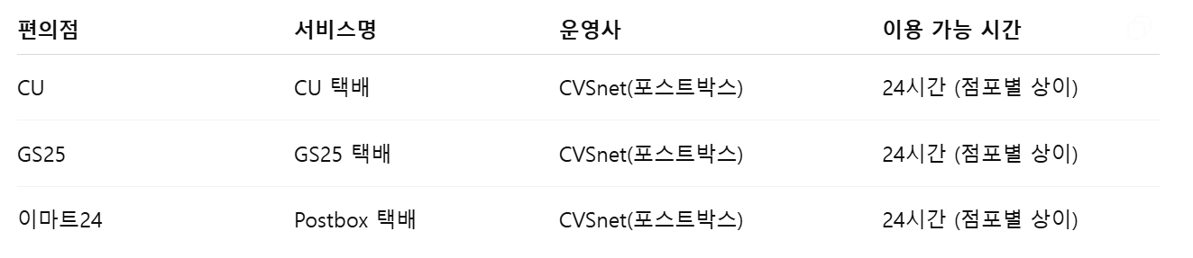 📌 참고: 세븐일레븐, 미니스톱은 비정기적 운영 또는 택배 불가 매장도 있으므로 CU/GS25 위주 이용 추천