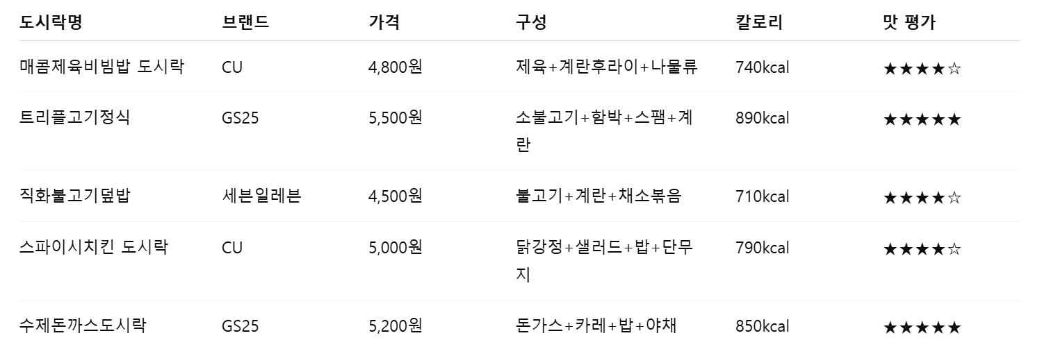 이번 포스팅에서는 2025년 7월 기준, CU, GS25, 세븐일레븐의 신상 도시락 중 베스트 5를 선정해