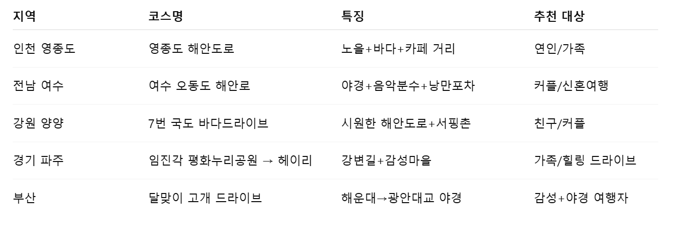 - 추천 포인트: 해안 따라 이어지는 드라이브 + 노을 감상 + 감성 카페