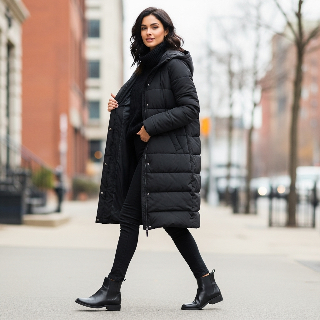 추천: 롱패딩, 맥시 패딩 피할 것: 너무 짧은 크롭 패딩 스타일링 팁: 벨트로 허리 라인 강조