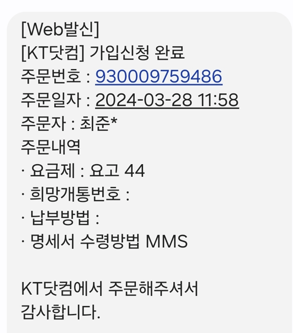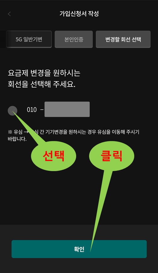 인증이 완료가 되면, 다시 요금제를 사용할 핸드폰에서