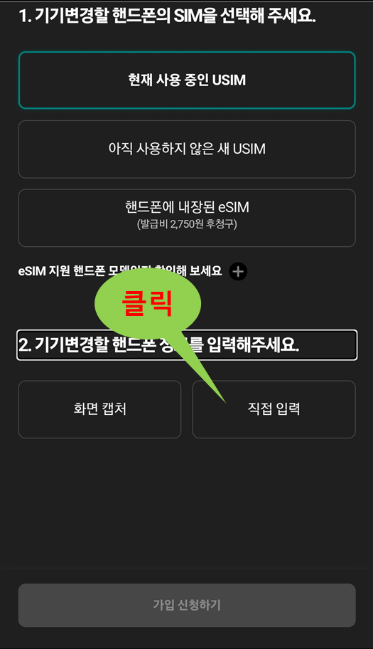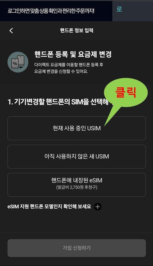 그리고 가입 및 진행은 요금제도를 사용할 핸드폰으로 진행하게 됩니다.