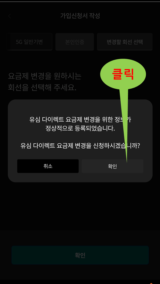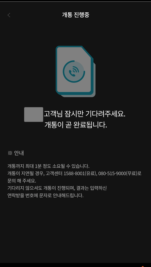 요금제도를 사용할 폰에서는 인증 진행 대기 화면이