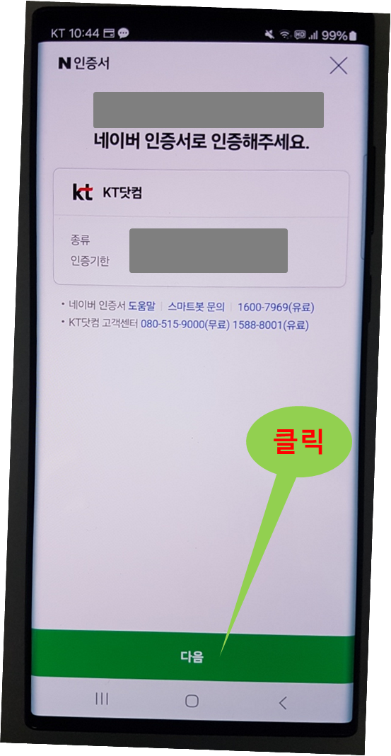 - 인증서 준비 : PASS 인증서나 네이버 인증서를 인증받을 핸드폰에 설치합니다..(예시는 네이버인증서입니다)