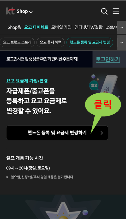 - 요고 요금제도 가입 사이트 바로가기 : https://shop.kt.com/direct/directChangeRate.do