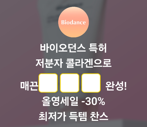 퀴즈) 바이오던스 특허 저분자 콜라겐으로 매끈 OOO 완성! 올영세일 -30% 최저가 득템 찬스