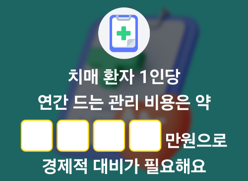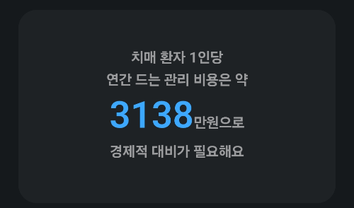 퀴즈) 치매 환자 1인당 연간 드는 관리 비용은 약 OOOO만원으로 경제적 대비가 필요해요
