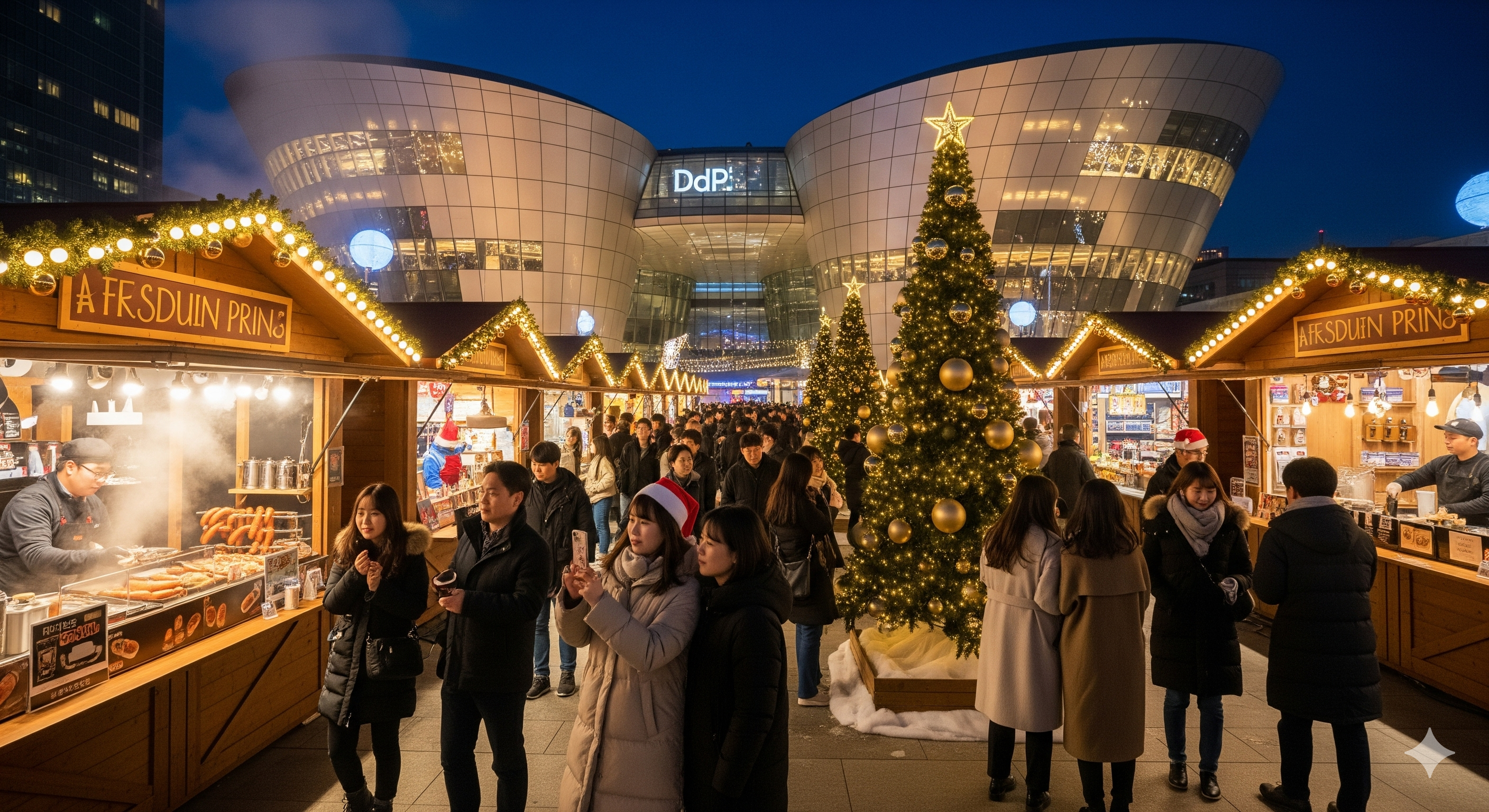 - 서울 DDP 크리스마스 마켓: 유럽풍 조명 거리, 커플 포토존