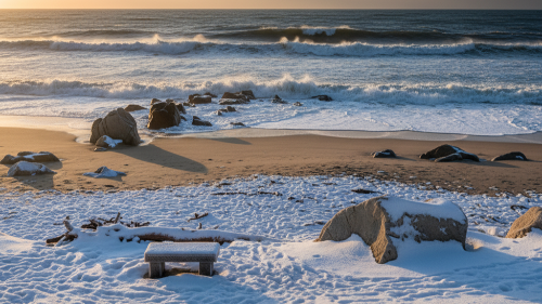- 추천 포인트: 눈 덮인 방파제 위에서 바라보는 바다는 겨울만의 차가운 매력이 있습니다.