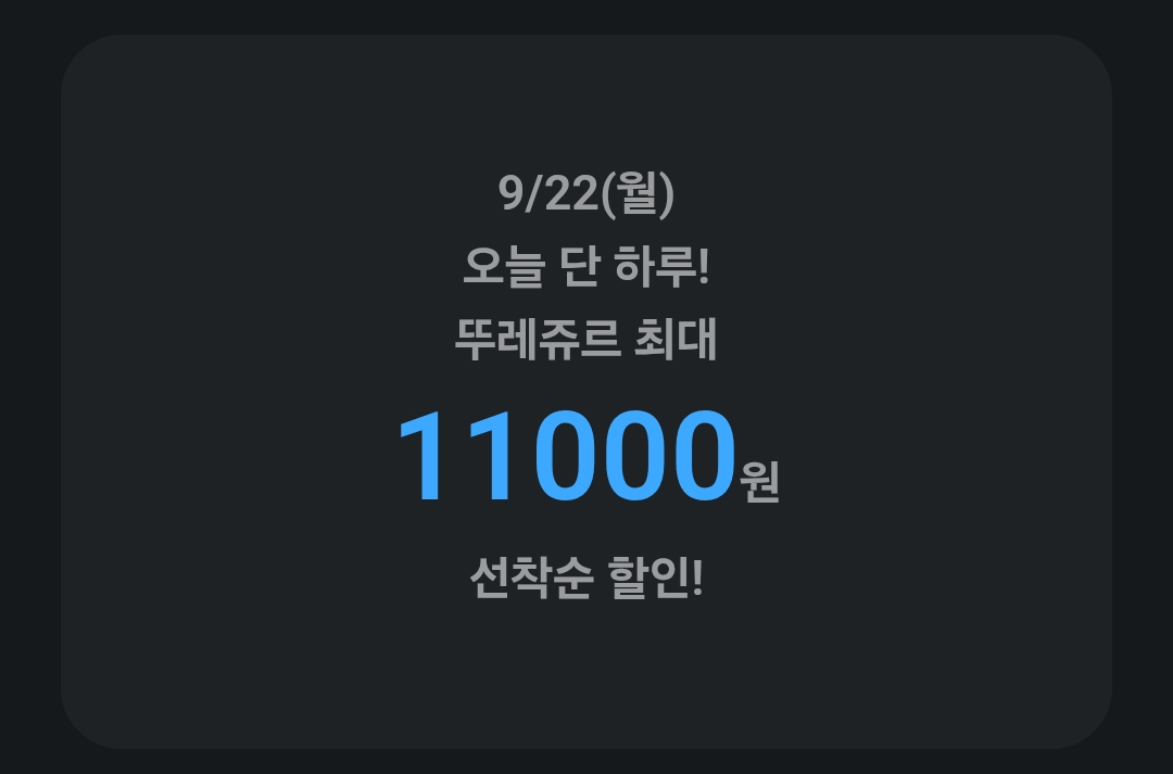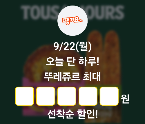 퀴즈) 오늘 단 하루! 뚜레쥬르 최대 OOOOO원 선착순 할인!