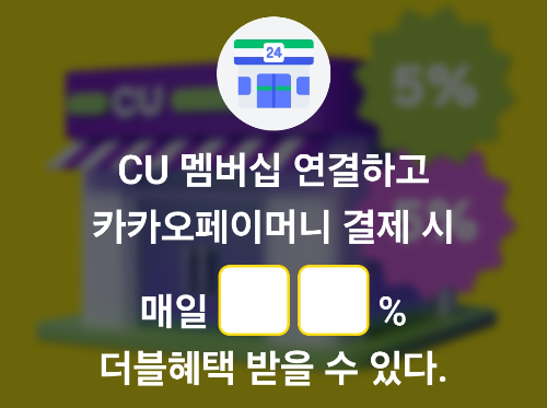 퀴즈) CU멤버십 연결하고 카카오페이머니 결제 시 매일 OO% 더블 혜택 받을 수 있다