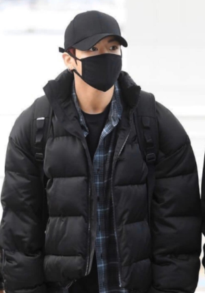 공항 패션 속 방탄소년단 정국의 숏패딩 룩,