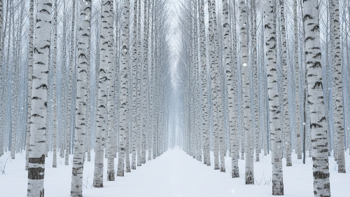 하얀 자작나무들이 끝없이 이어진 숲길은