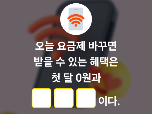 퀴즈) 오늘 요금제 바꾸면 받을 수 있는 혜택은 첫 달 0원과 OOO이다.