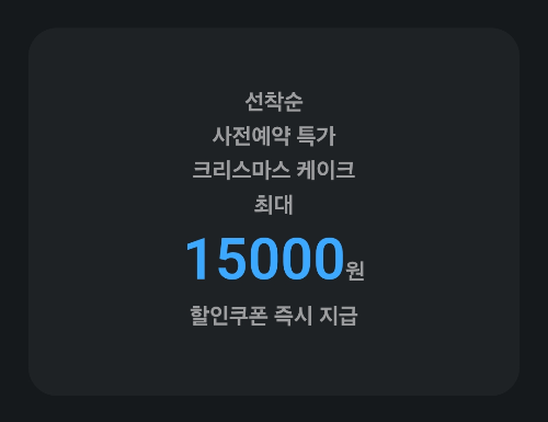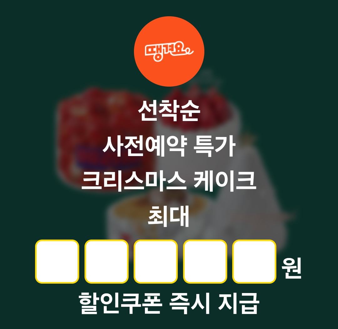 퀴즈) 선착순 사전예약 특가 크리스마스 케이크 최대 OOOOO원 할인쿠폰 즉시 지급