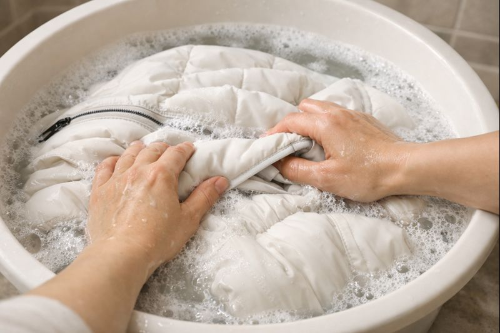 ✔ 문지르거나 비틀지 마세요 → 충전재가 한쪽으로 몰릴 수 있어요!