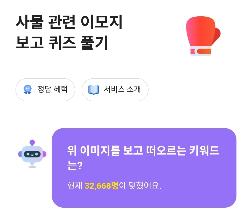 AI가 만들어준 이모지 조합을 보고 떠오르는 단어를 맞히는 퀴즈인데,