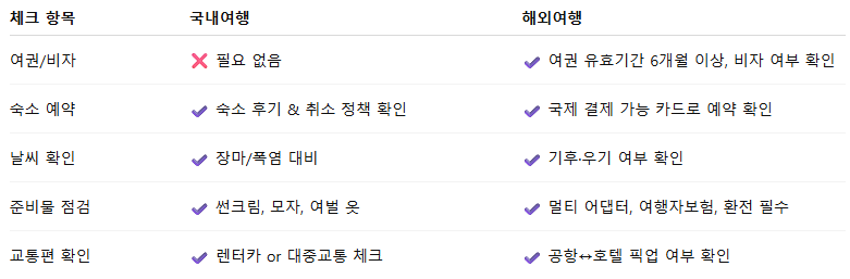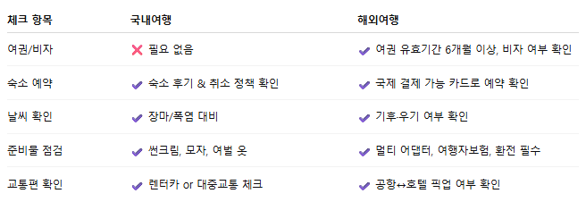 📦 5. 여행 준비 체크리스트 (국내 & 해외 공통)