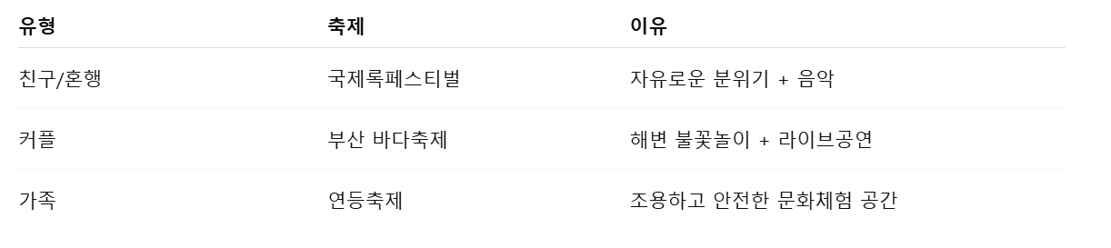 - 우천 시 일정 변경 가능 → 축제 SNS 공지 확인 필수