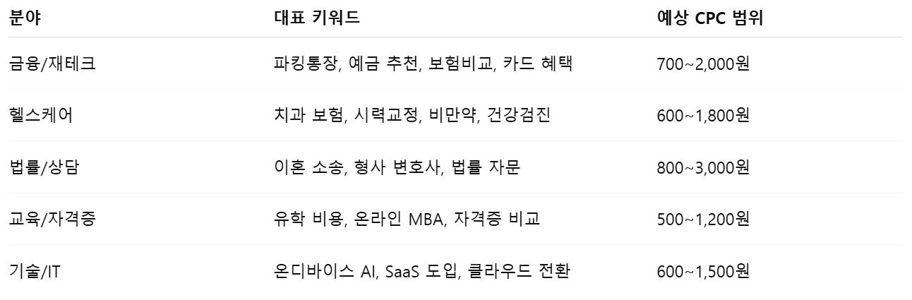 3️⃣ 2025년 기준 고수익 키워드 분야 Top 5